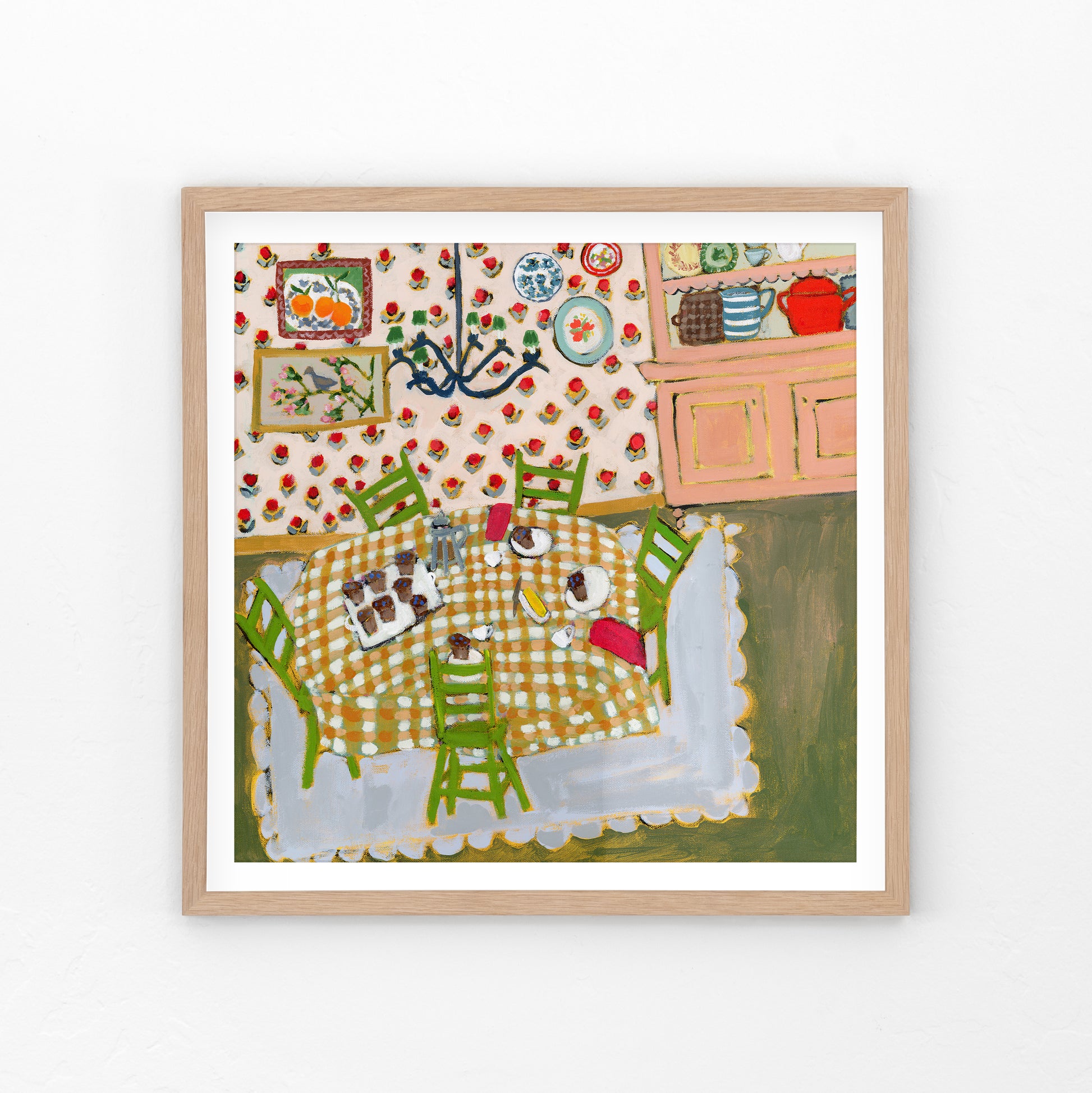 This Giclée Fine Art Print is created from my original painting "Blueberry Muffins & French Press".