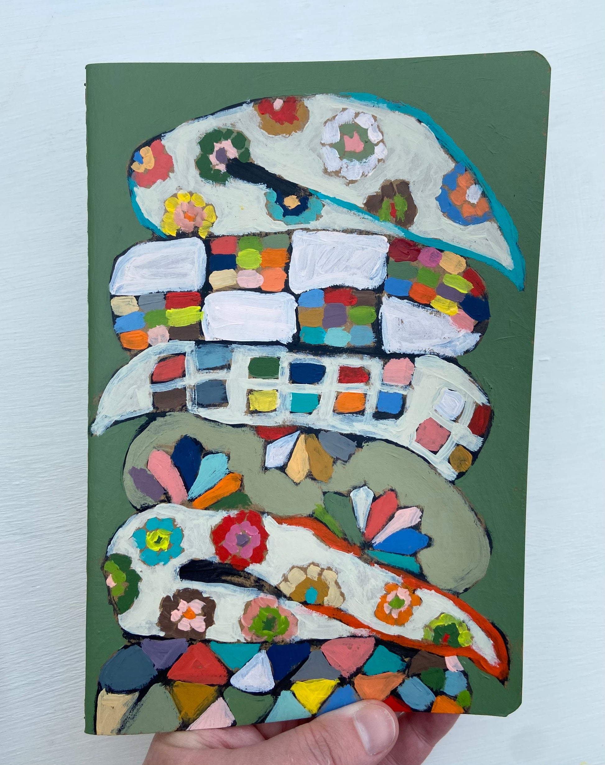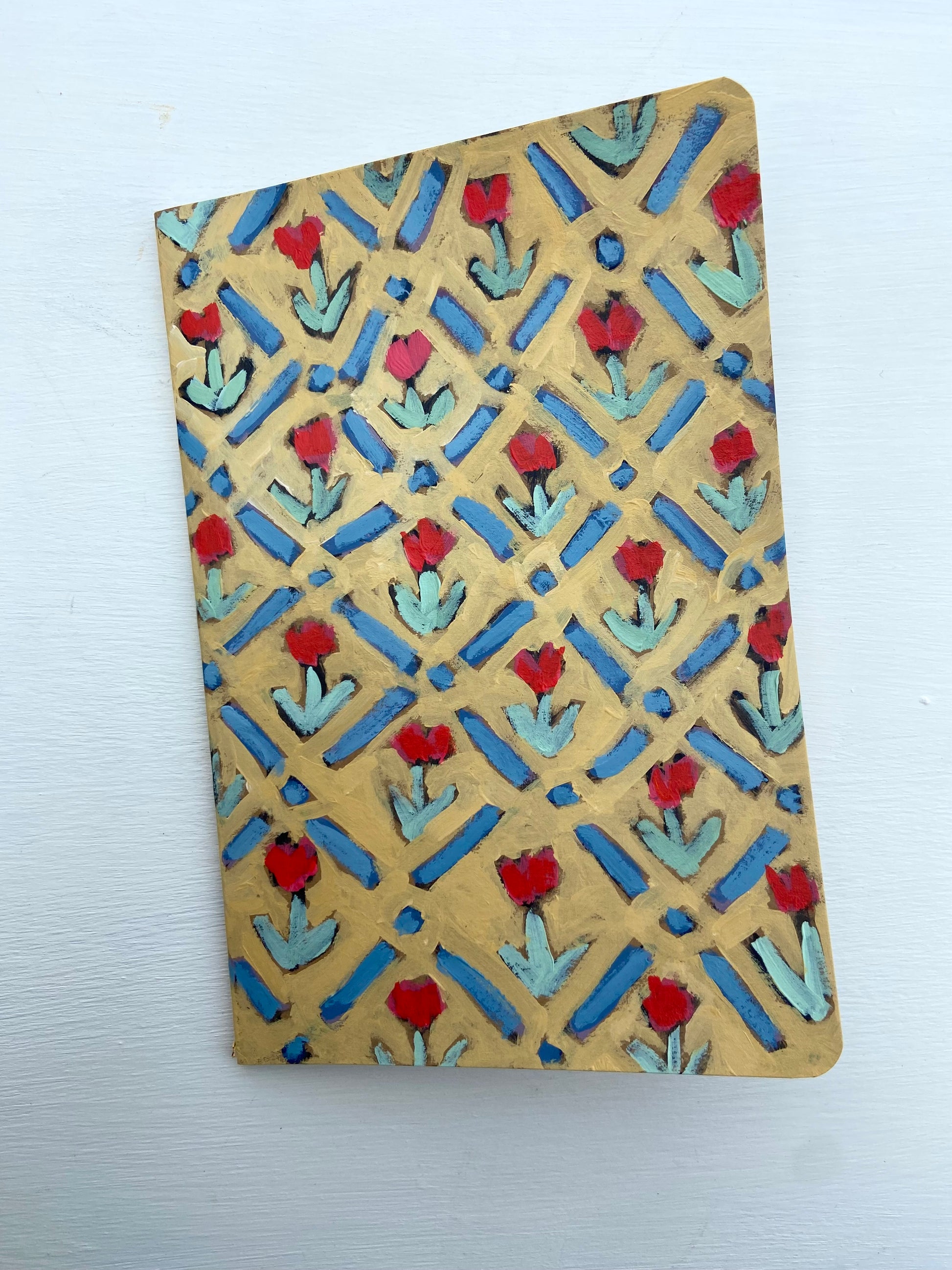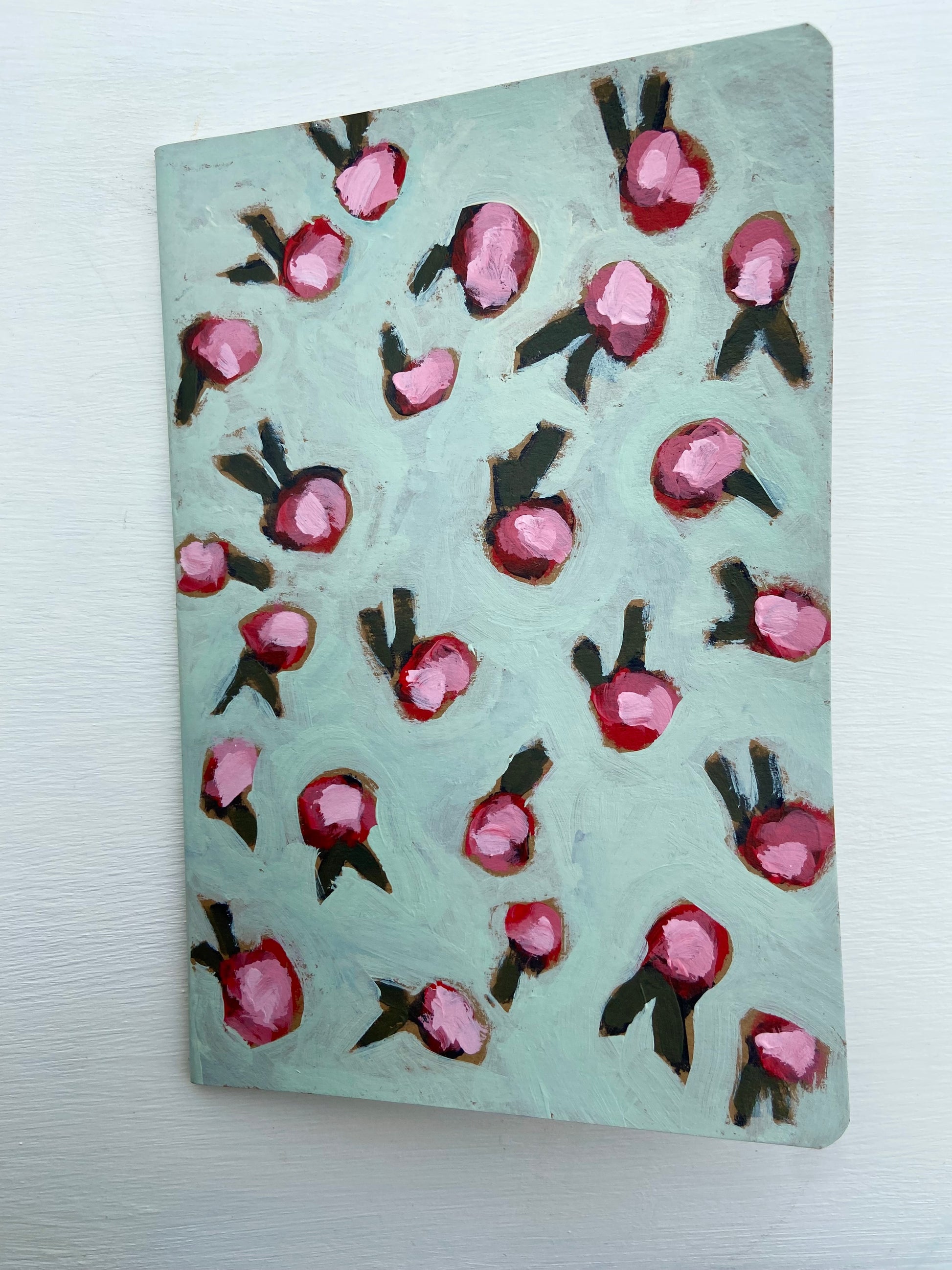 Each Journal is hand painted with a unique design. Soft Bound journals have 60 blank pages